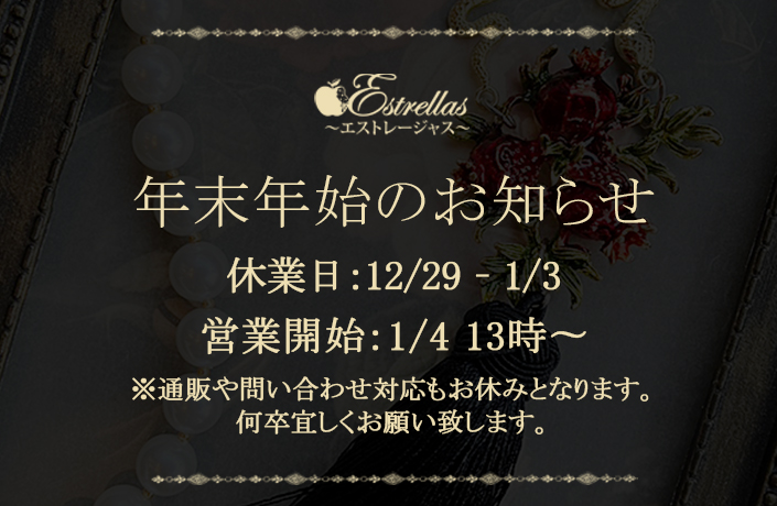 Estrellas店頭SALE開催! 新しい一年の始まりに、特別なセールをご用意しました。 ゴシック&ロリィタ […]