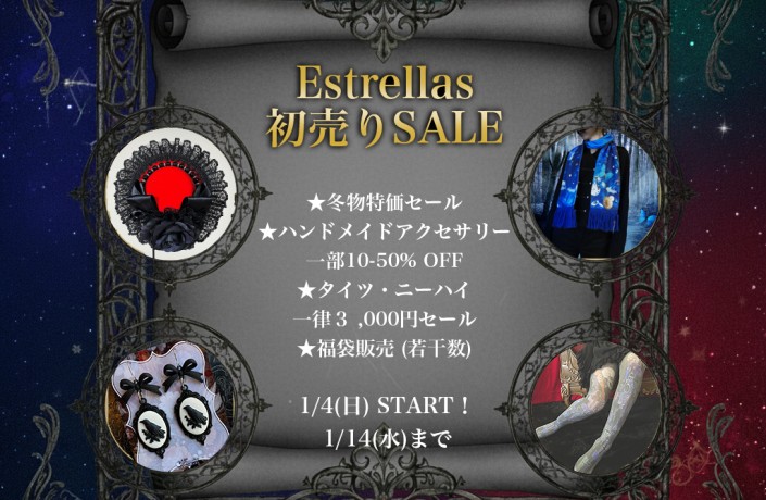 Estrellas店頭SALE開催! 新しい一年の始まりに、特別なセールをご用意しました。 ゴシック&ロリィタ […]